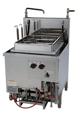 GS-OTR(180ℓ)では、1時間につけ麺が100~200食、ラーメンが80食ゆで上げることができます。 お問い合わせ、カタログご希望の場合はお電話をお願いいたします。 03-3759-2749