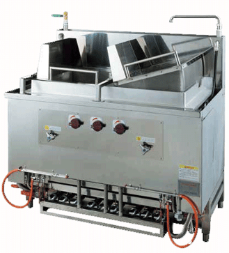 大型ハイブリッドうどん釜 横型 回転カゴ2個